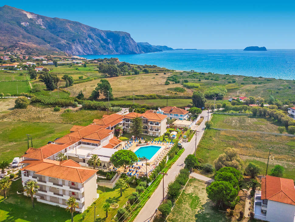 Het dorpscentrum van Kalamaki ligt op loopafstand van het hotel en biedt een keur aan restaurantjes en souvenirwinkels. De luchthaven van Zakynthos bevindt zich op slechts 5 kilometer afstand, waardoor je snel kunt genieten van je vakantie.