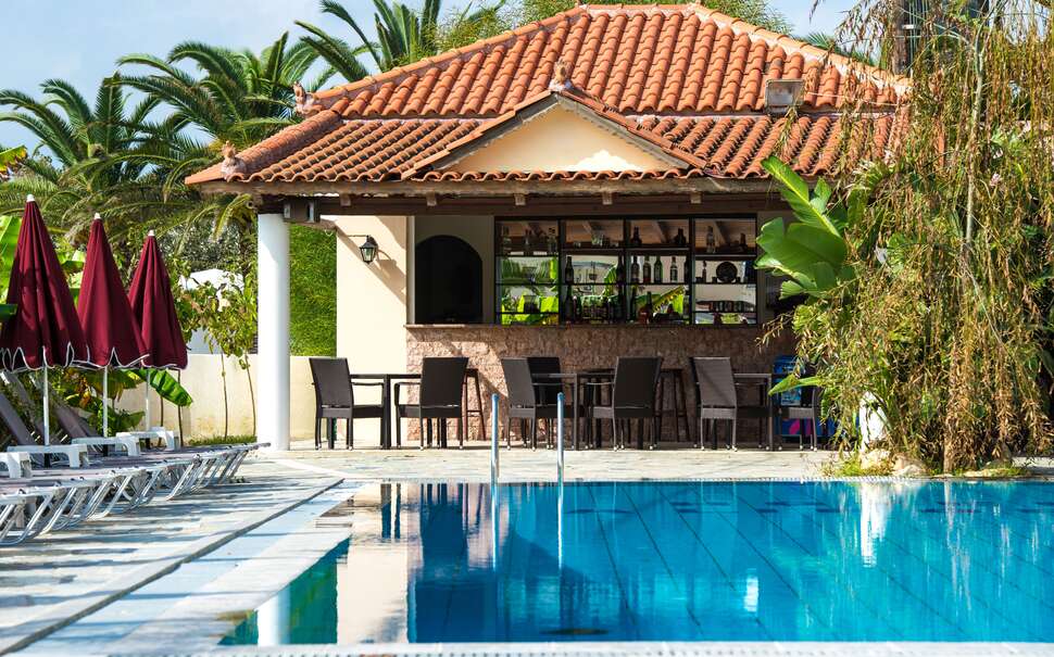 Het California Beach Hotel verwelkomt gasten met een vriendelijke sfeer en moderne voorzieningen. De kamers zijn stijlvol ingericht en beschikken over airconditioning, gratis WiFi, een tv, en een balkon of terras. Veel kamers bieden een prachtig uitzicht over het kristalheldere water van de Ionische Zee, wat een extra touch van luxe en ontspanning toevoegt aan je verblijf.